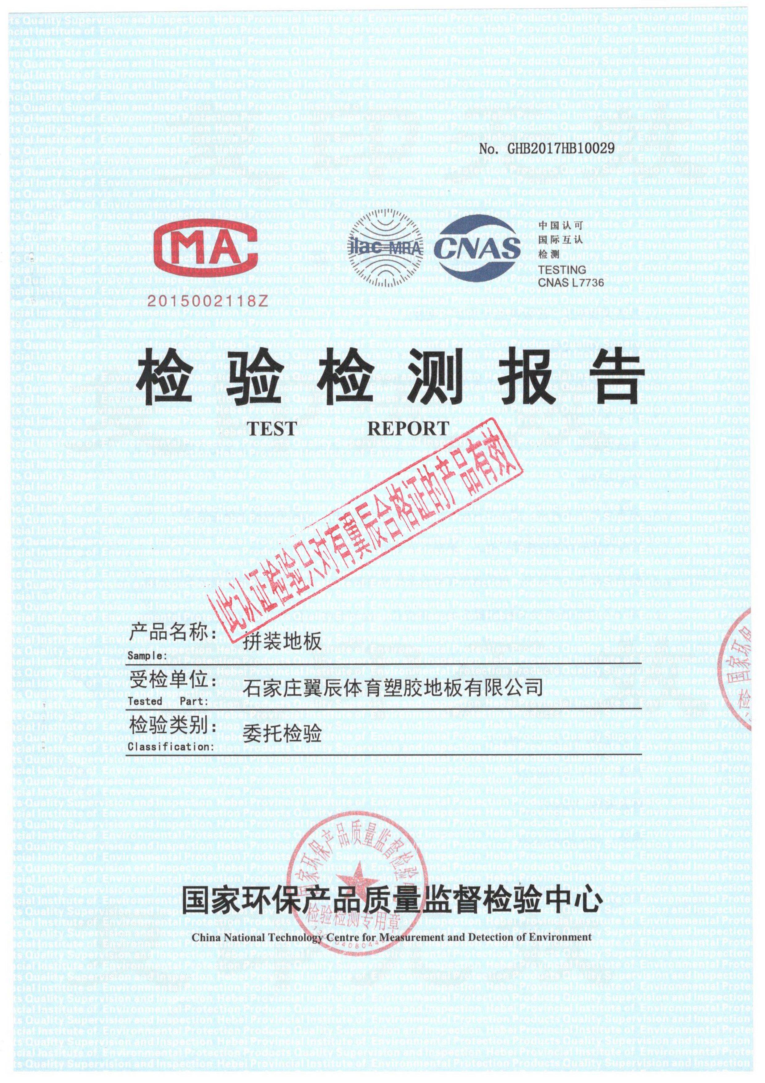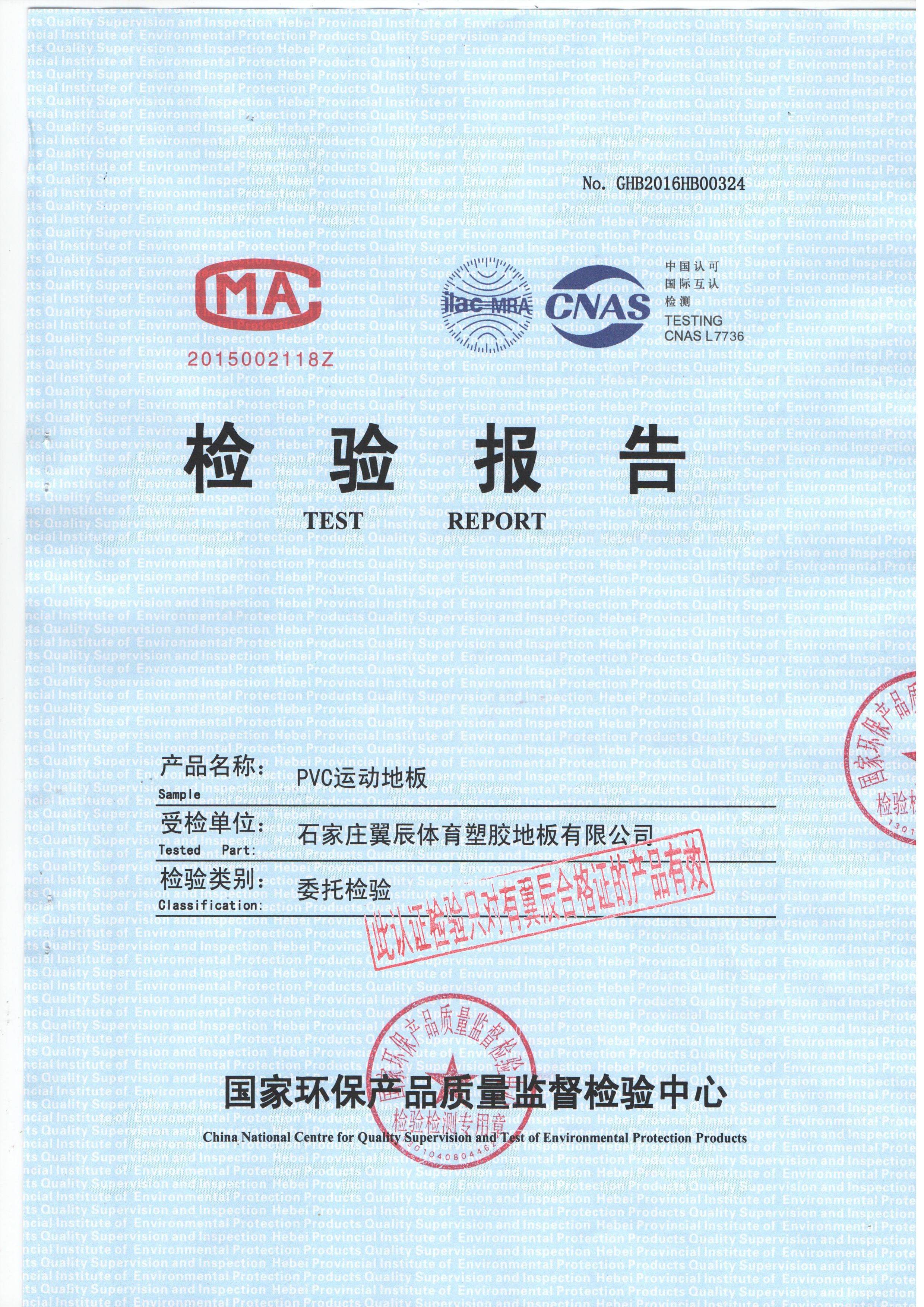 PVC運動地板-國家環(huán)保產(chǎn)品質(zhì)檢報告