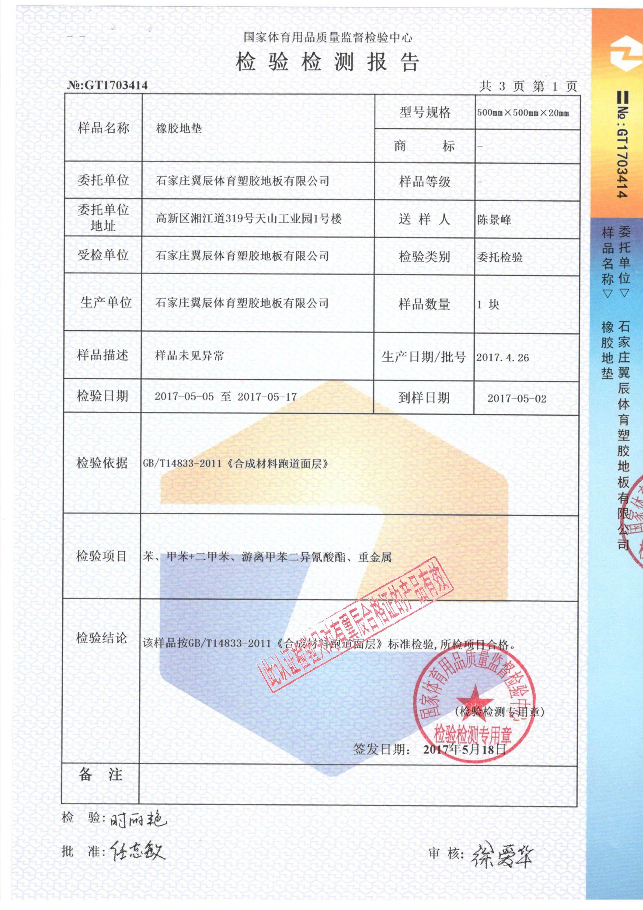 橡膠地板-國家體育用品質(zhì)檢報告