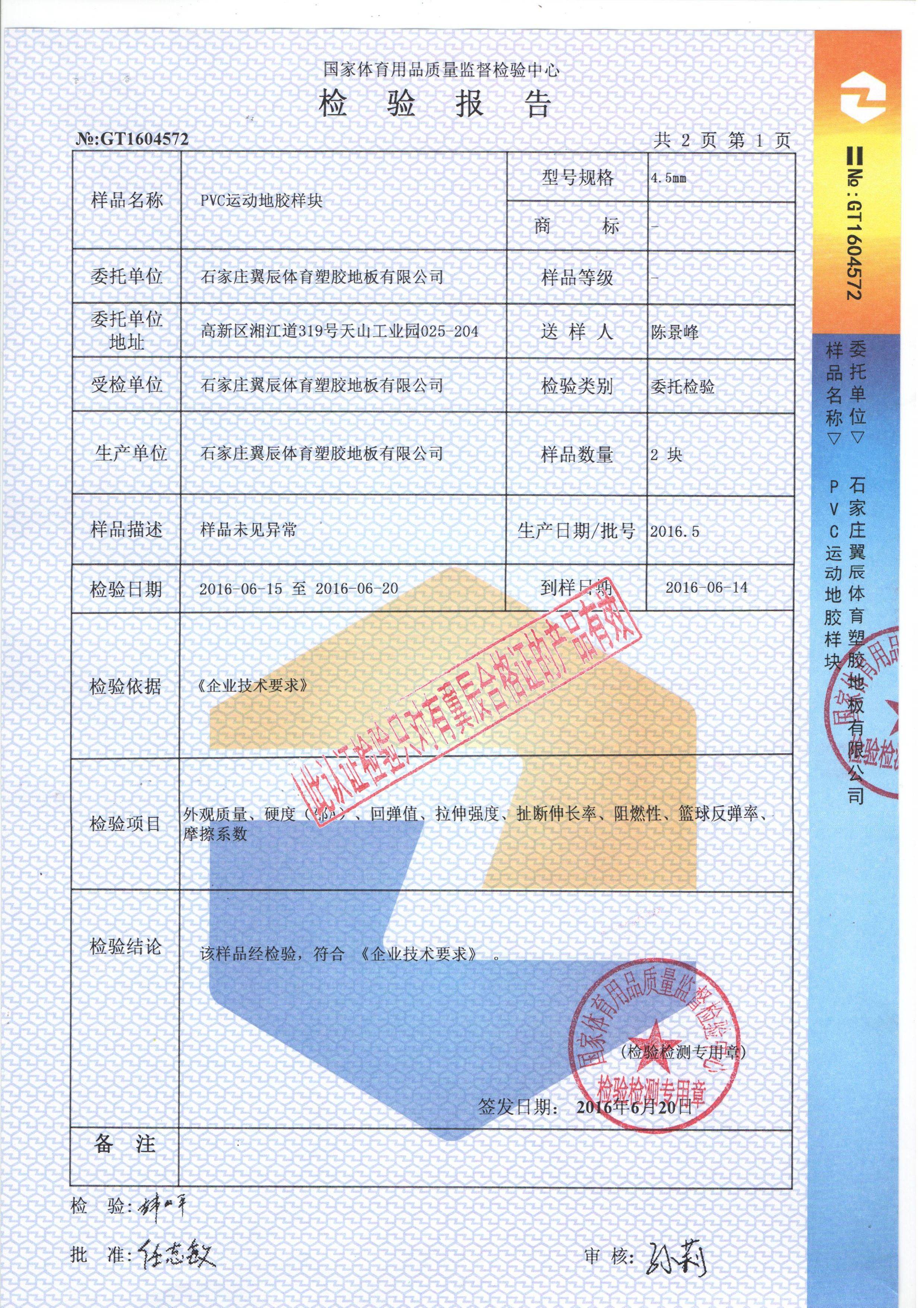 PVC運動地板-國家體育用品質(zhì)量檢驗報告