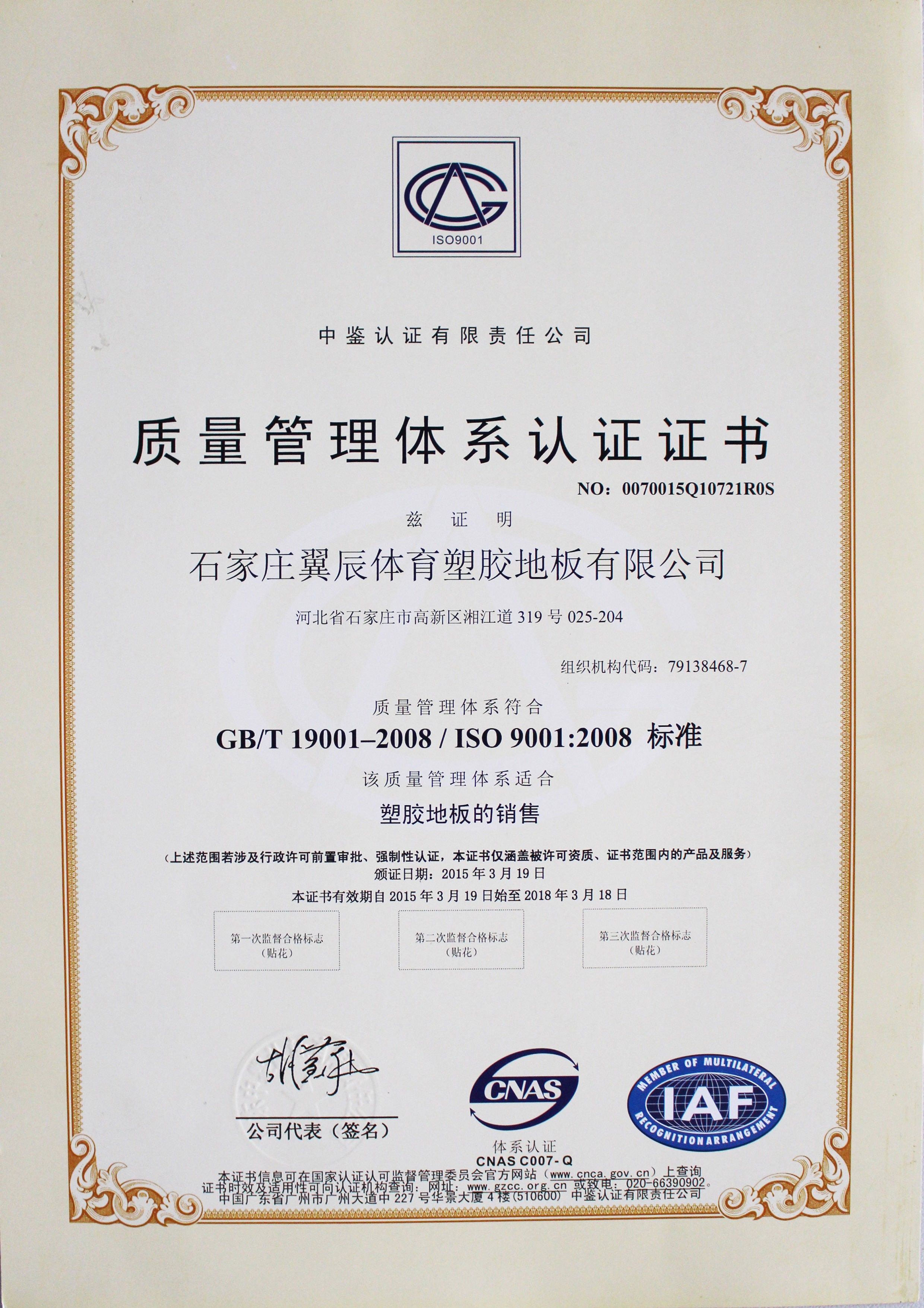SGS認證-石家莊翼辰體育塑膠地板有限公司
