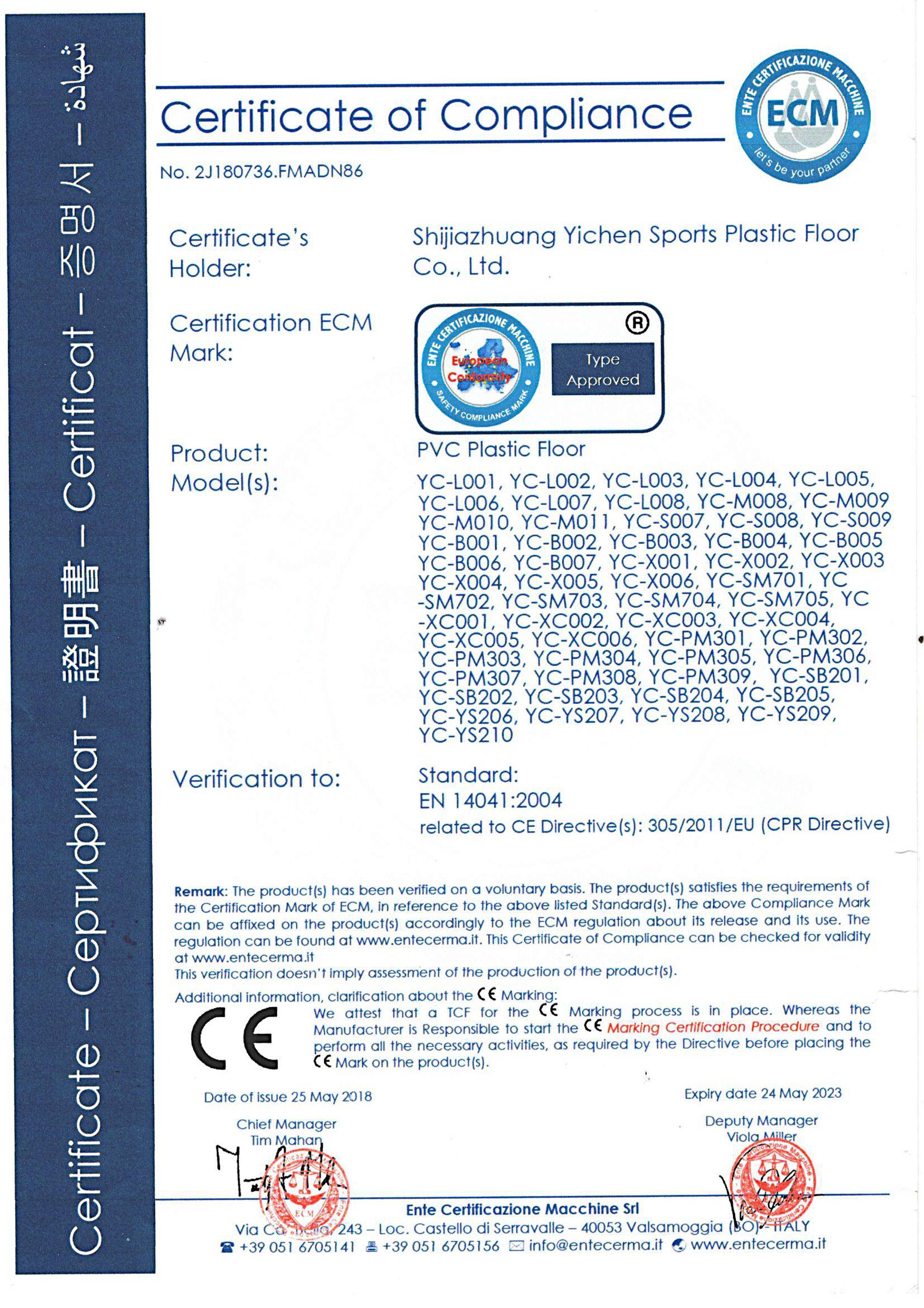 CE認證-石家莊翼辰體育塑膠地板有限公司